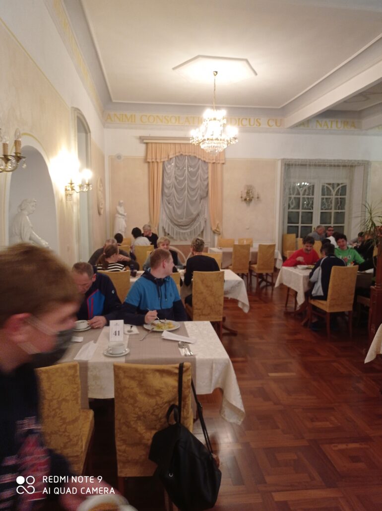 Odhod je bil predviden z avtobusom v petek 26.12.2021 ob 9 uri in sicer smo zaradi zagotavljanja varnih zdravstvenih  pogojev, pred vstopom v avtobus, opravili HAG test za vse udeležence. Tako smo se brez  zadržkov in dvomov podali na pot. Na pot smo se podali tudi s kombijem že zaradi tistih oseb, ki jim avtobus predstavlja preveliko gibalno oviro za vstop in zaradi mobilnosti na samem kraju, saj nam avtobus zagotavlja samo prihod in odhod.